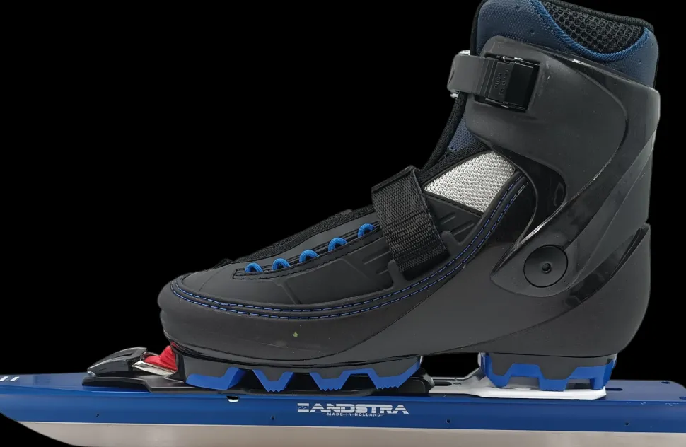 Deze schoen is de doorontwikkelde versie van de bestaande semi-zachte schoen met een frisse nieuwe uitstraling. De speciaal door Zandstra ontwierp zoolplaten zorgen voor een solide binding op het schaatsonderstel. De zool is voorzien van speciale antislip diamanten, waardoor korte afstanden lopen/klunen eenvoudig is. En daarna klik je de schoen heel gemakkelijk weer op het onderstel!